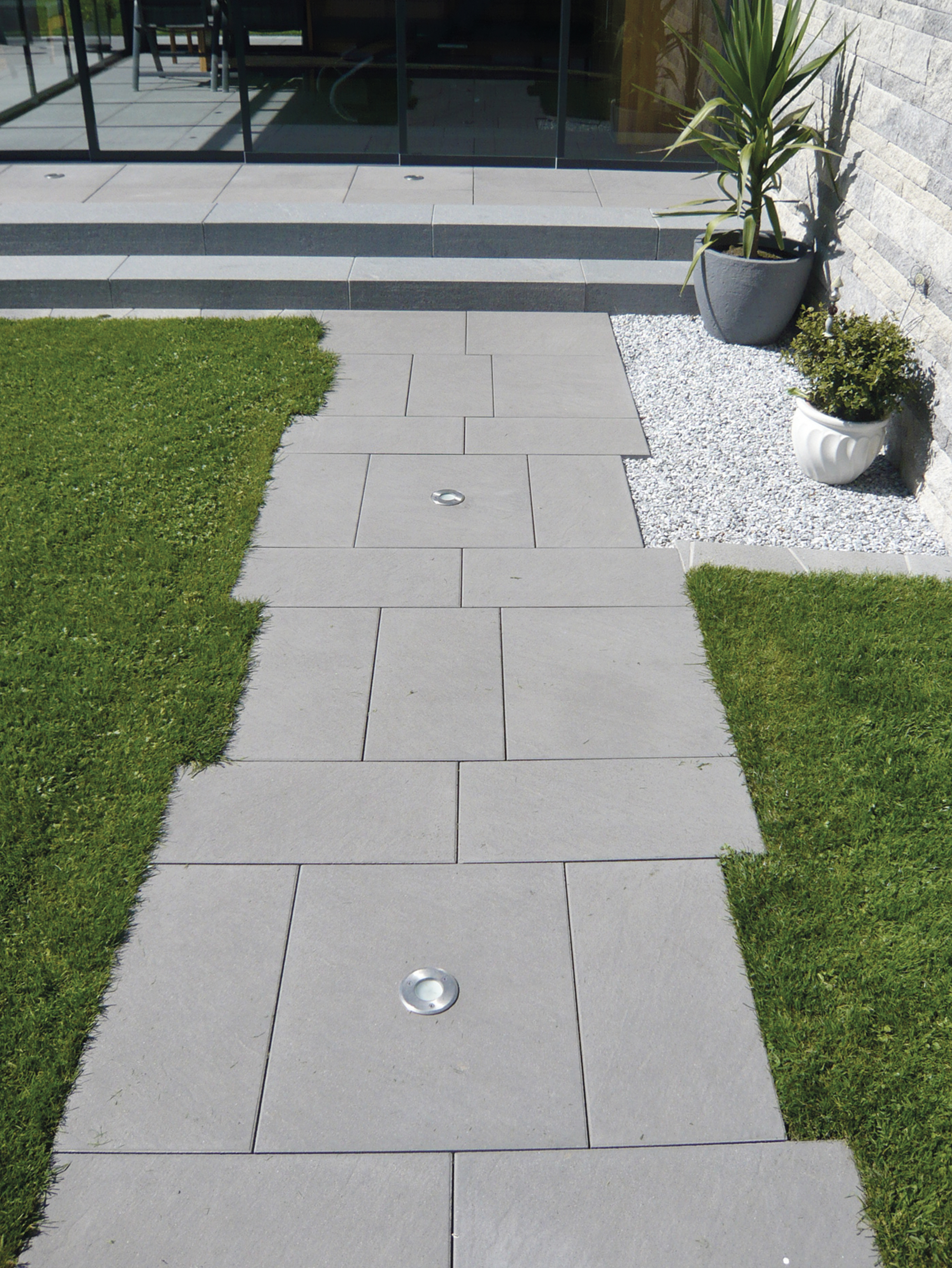 Die strukturierte Oberfläche sorgt für ein einzigartiges Spiel aus Licht und Schatten, das jede Terrassen-Fläche lebendig wirken lässt. Diese besondere Optik verleiht eine elegante Tiefe - für Terrassen und Außenflächen mit Stil und Charakter.